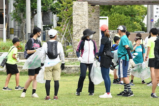 その奥武山パークマネージメントさんとともに、未就学児など遠くまでは足を運べない方々には公園内をプロギングしていただきました。